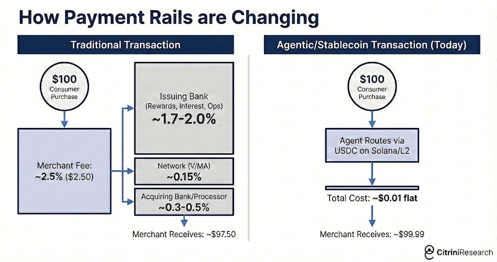 El comercio agentivo, al esquivar las comisiones de intercambio, representaba un riesgo mucho mayor para los bancos enfocados en tarjetas y los emisores mono-producto, que capturaban la mayor parte de esa comisión del 2-3% y habían construido segmentos enteros de negocio alrededor de programas de recompensas financiados por el subsidio de los comercios.