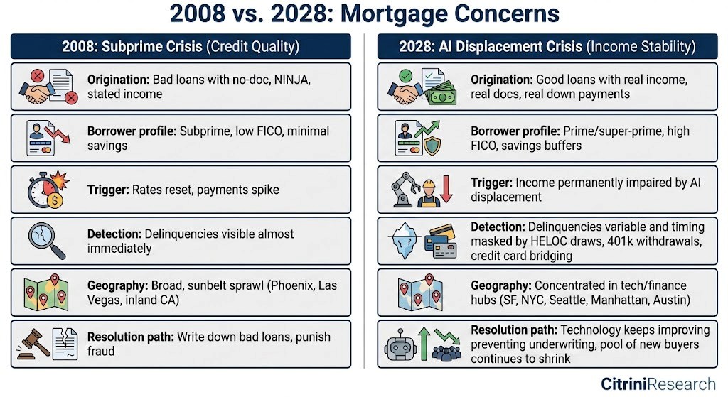 En 2008, los préstamos eran malos desde el día uno. En 2028, los préstamos eran buenos desde el día uno. El mundo simplemente… cambió después de que se otorgaron. Las personas tomaron deuda contra un futuro en el que ya no pueden darse el lujo de creer.